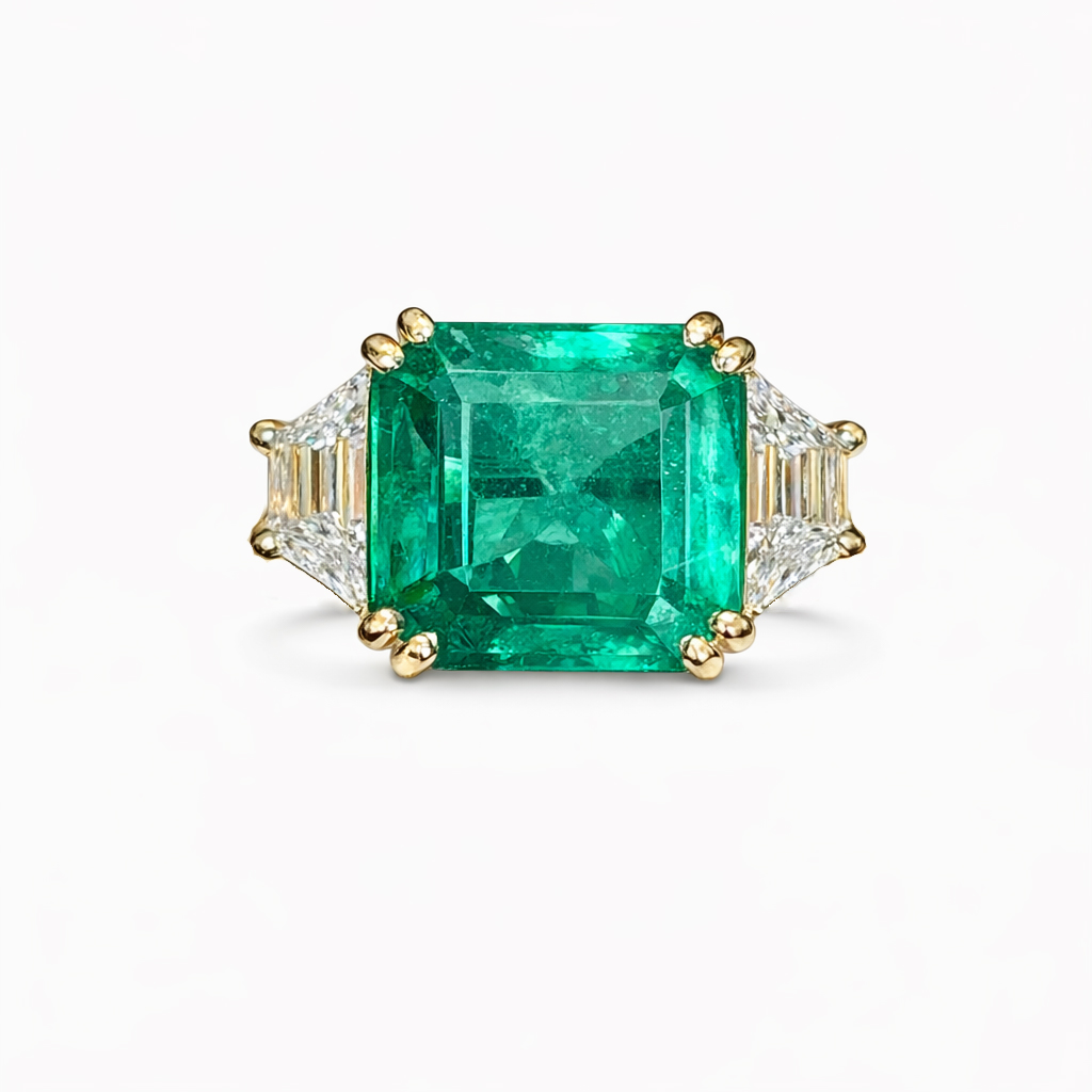 Pierścionek Hermitage ze szmaragdem i diamentami z 18K żółtego złota r.11