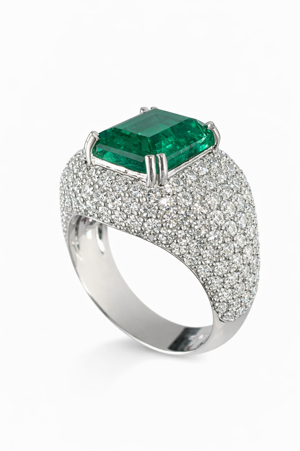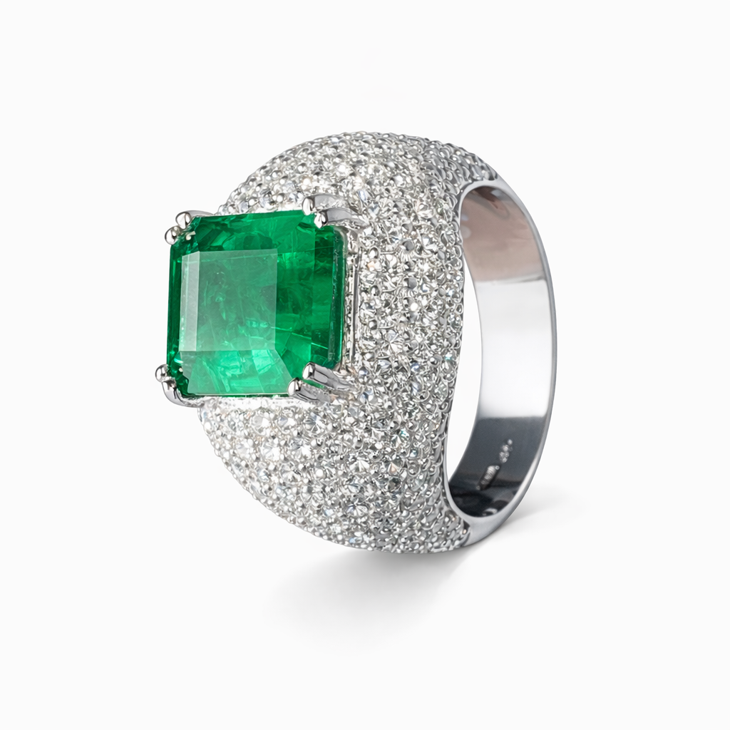 Pierścionek Hermitage ze szmaragdem i diamentami z 18K białego złota r.16