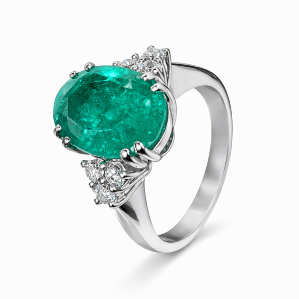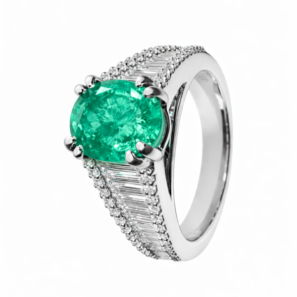 Pierścionek Hermitage ze szmaragdem i diamentami z 18K białego złota r.15