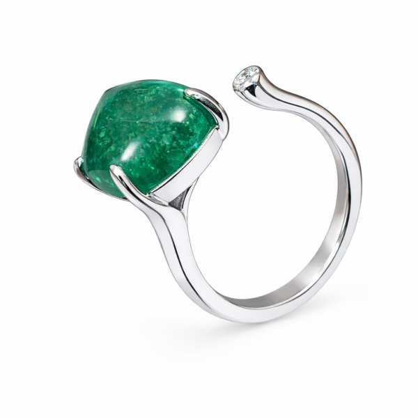Pierścionek Hermitage ze szmaragdem z 18K białego złota r.12