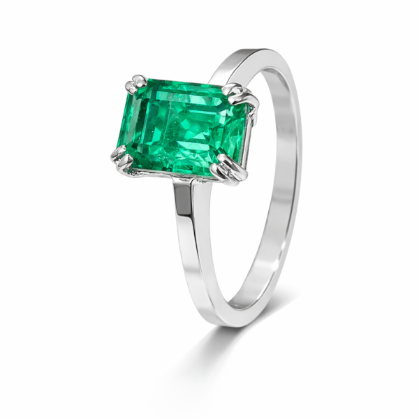 Pierścionek Hermitage ze szmaragdem z 18K białego złota r.13