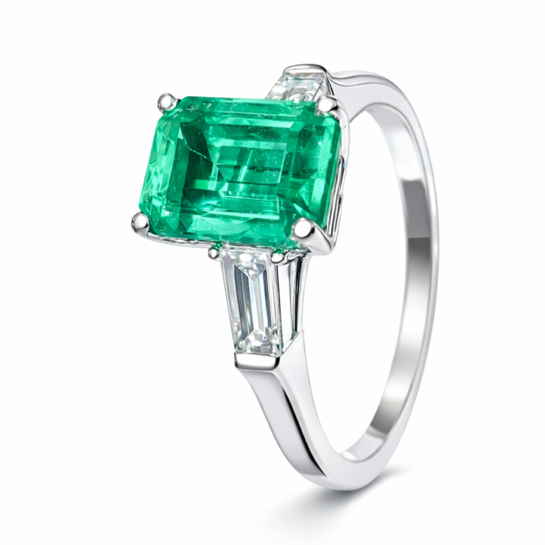 Pierścionek Hermitage ze szmaragdem i diamentem z 18K białego złota r.55